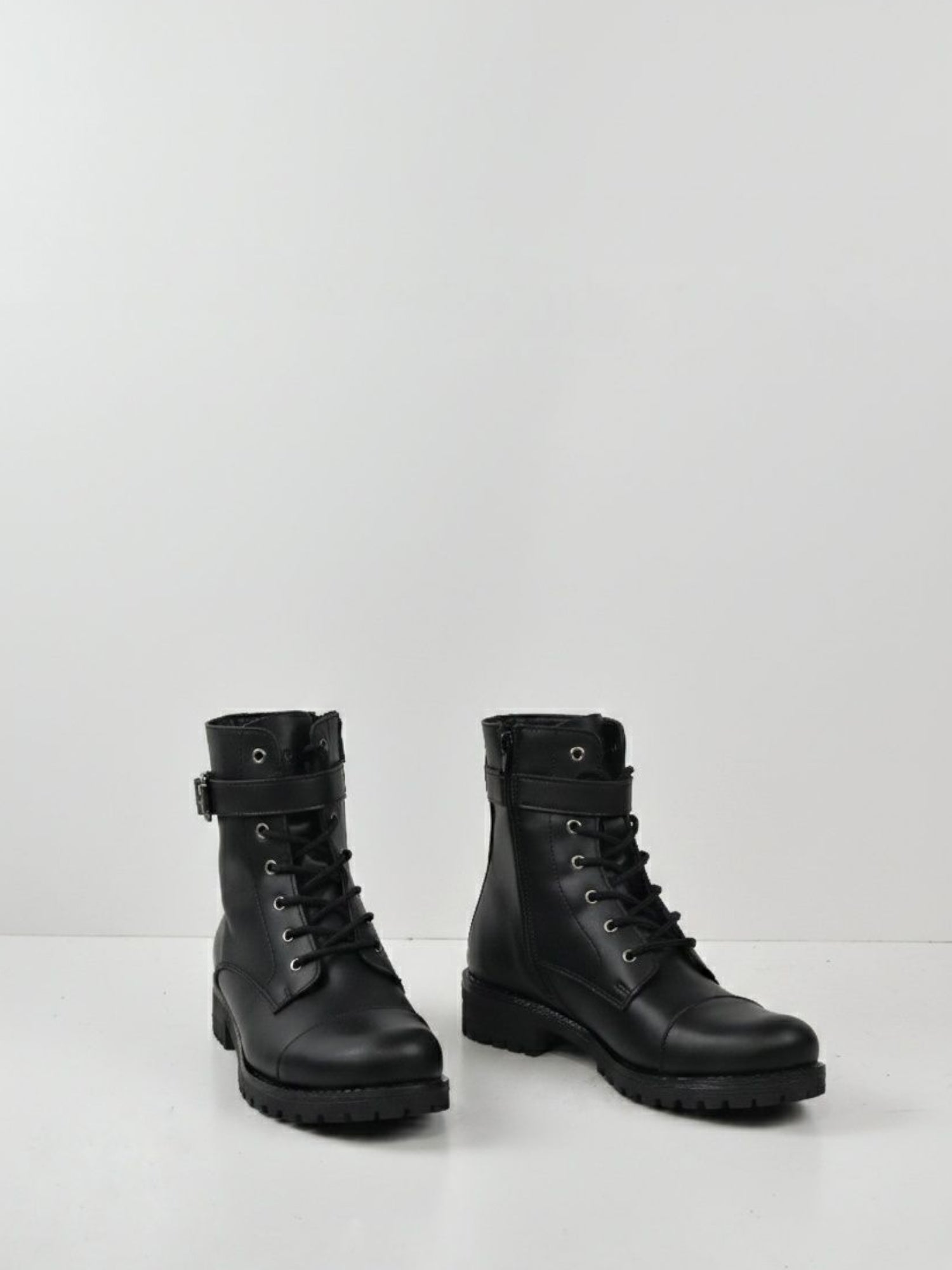 At the top sits a solid functional buckle which can be worn, done, or undone. If you like, keep these laced up and slip them on and off easily using the full-length zipper on the inside.