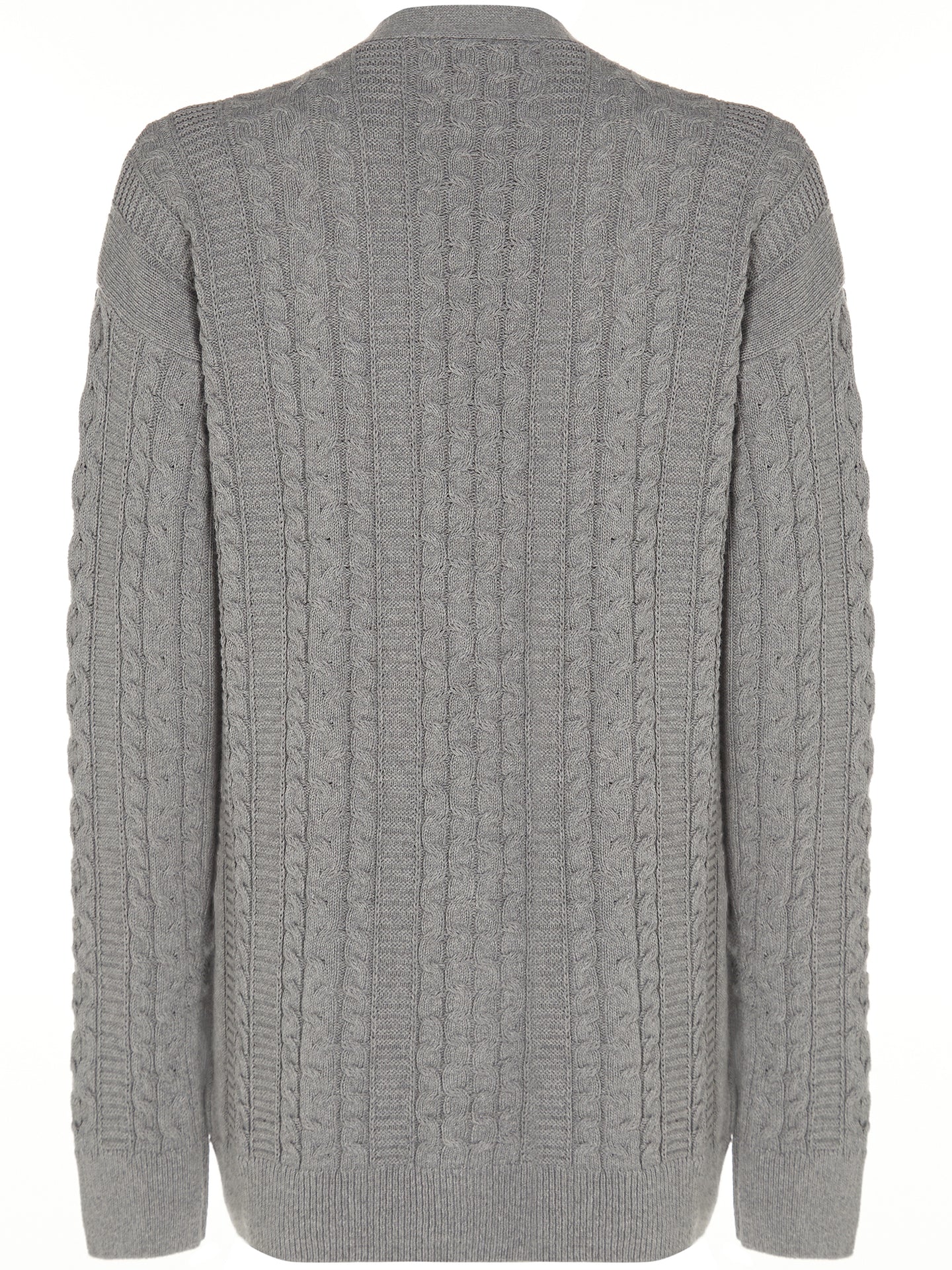 - Cable knit pattern with ribbed collar, cuffs and hem