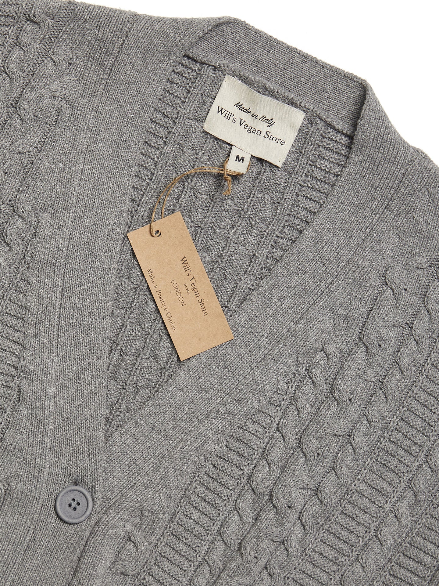 Knitted in small batches in Italy, this piece is crafted from 40% Better Cotton Initiative-certified cotton and 60% recycled materials, including production waste, post-consumer clothing, and plastic bottles. Featuring a classic cable knit pattern with ribbed collar, cuffs, and hem, it’s designed for both style and function. Two front pockets provide space for essentials, while the five matte-finish buttons, made in Italy from recycled compressed paper, add a subtle finishing touch. Even the labelling is thoughtfully made from recycled polyester, ensuring every detail reflects a conscious choice.
