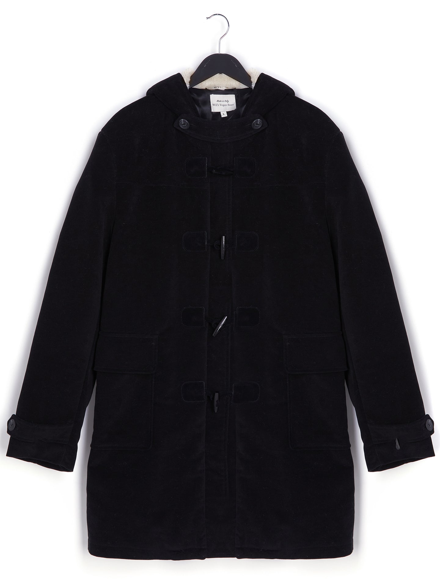 Vegan Wool Duffle Coat with Recycled Vegan Shearling