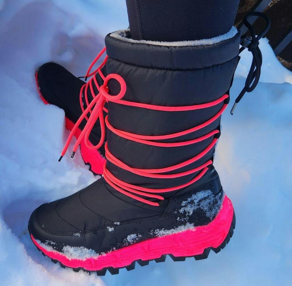- You can adjust the fit of the boots on your legs (using the lace-up fronts) and at the tops to stop snow and slush from getting in (using the rear adjustable toggles).